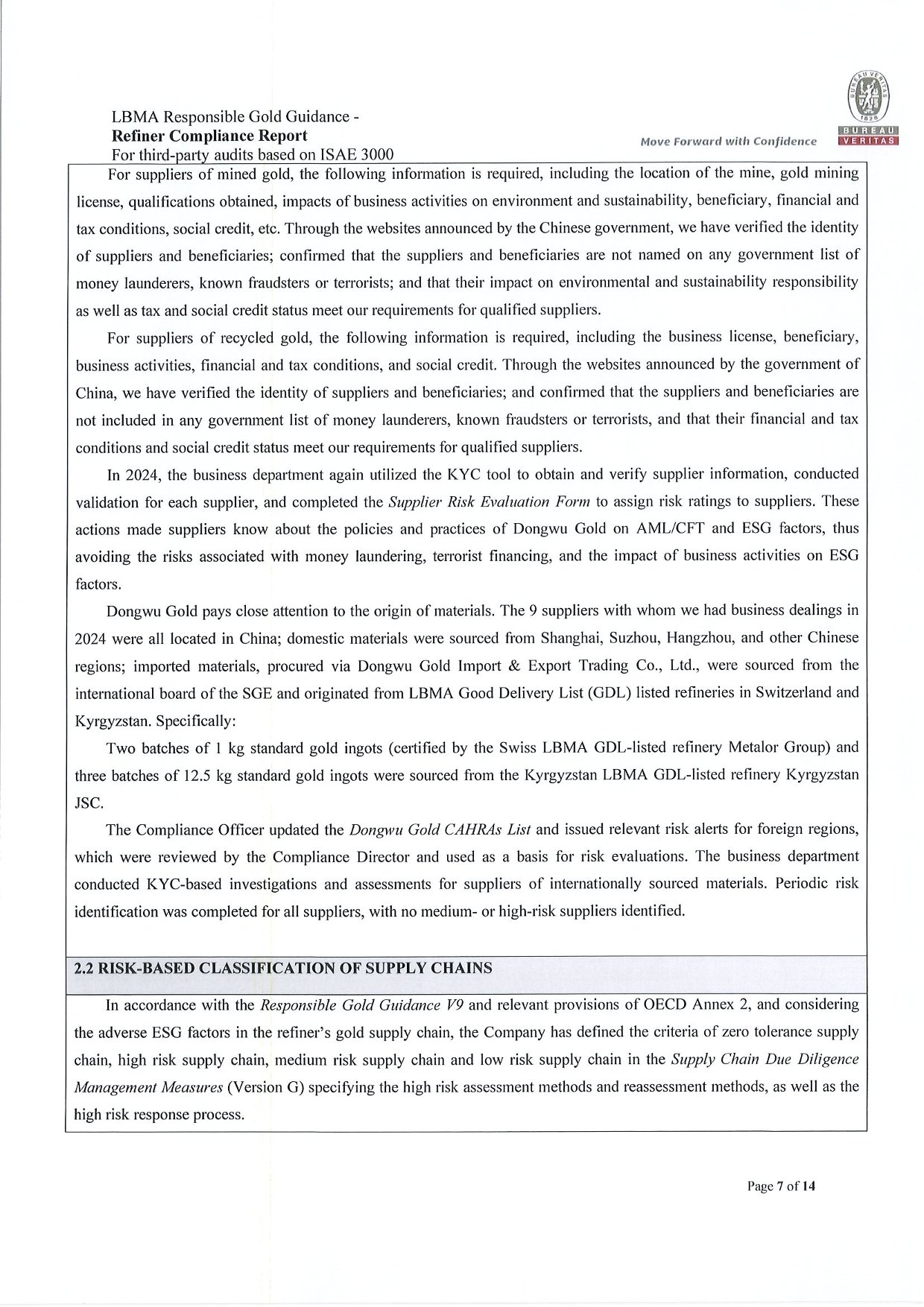 Dongwu Gold Refiner Compliance Report 2024
