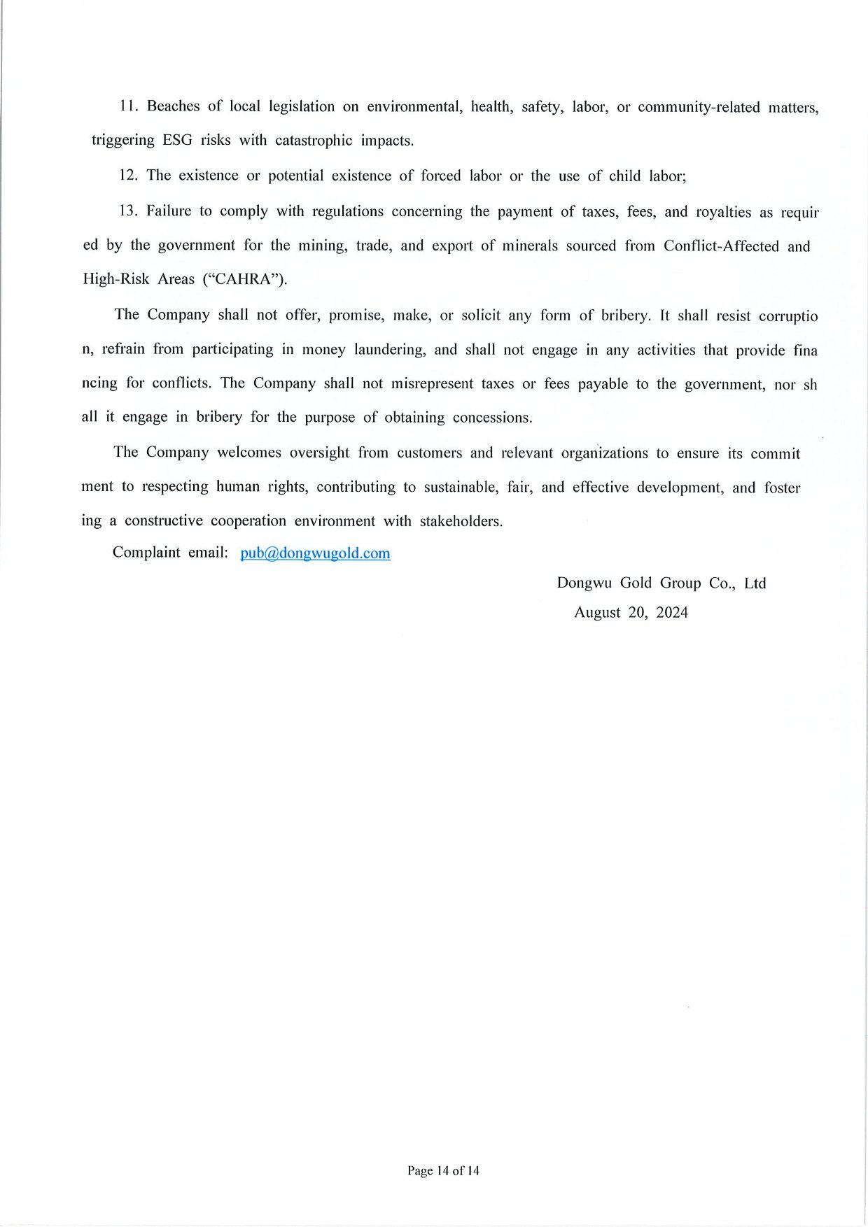 Management Measures for Supply Chain Due Diligence Dongwu Gold Group Co., Ltd(Version: G)